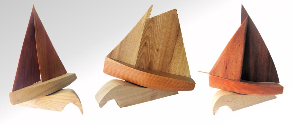 Hand carved wooden ornamental sailing boats in oak, mahogany & elm (sail05)