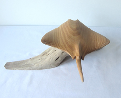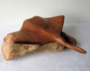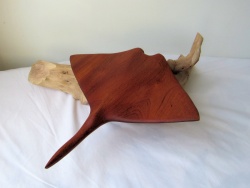 Hand carved wooden sculpture of a Manta Ray mounted on driftwood (Ray01)