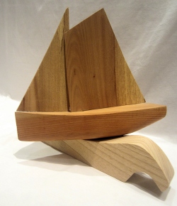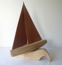 Hand carved wooden ornamental sailing boat in elm and ash (sail01)